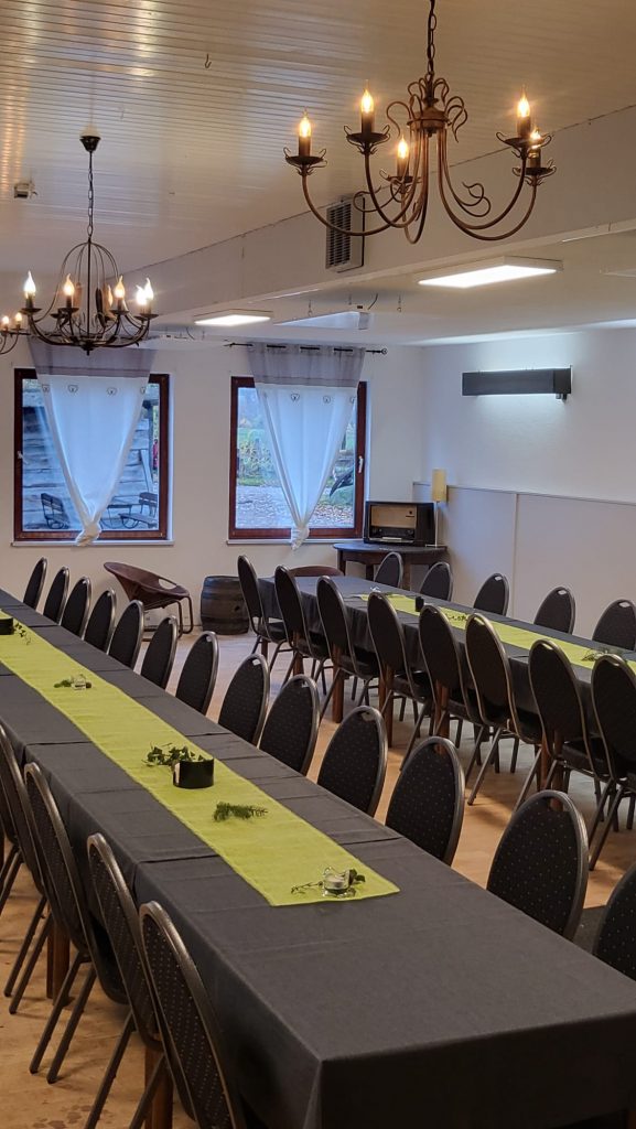 Sucht Ihr den idealen Ort für Ihre nächste Familienfeier, ein Jubiläum oder ein gemütliches Beisammensein? Unser campingeigener Saal bietet Platz für ca. 50 Personen und den passenden Rahmen für Deine Veranstaltung.